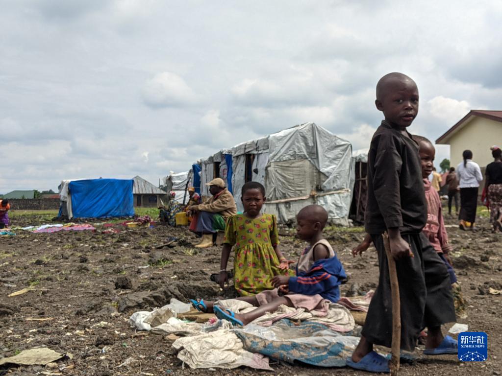5月25日,在刚果(金)北基伍省首府戈马市附近的庇护所内,一群孩子们在玩耍。近期,反政府武装“M23运动”的武装成员在刚果(金)北基伍省多个地区与政府军交火,大量平民因战乱逃离家园。