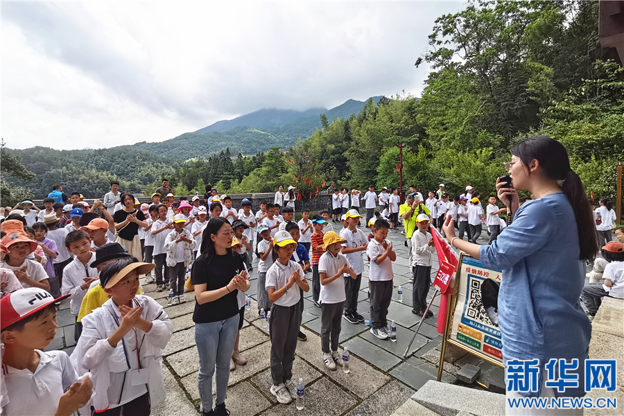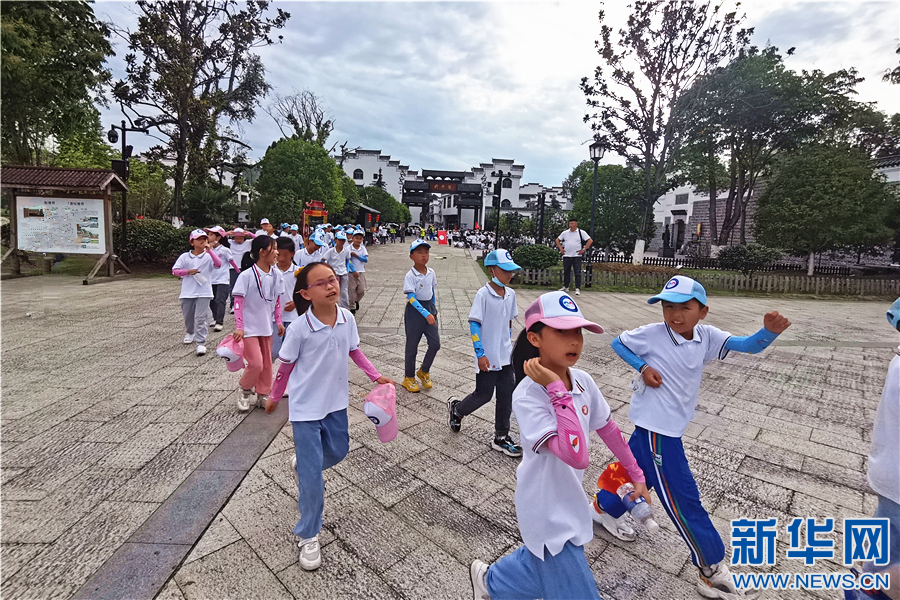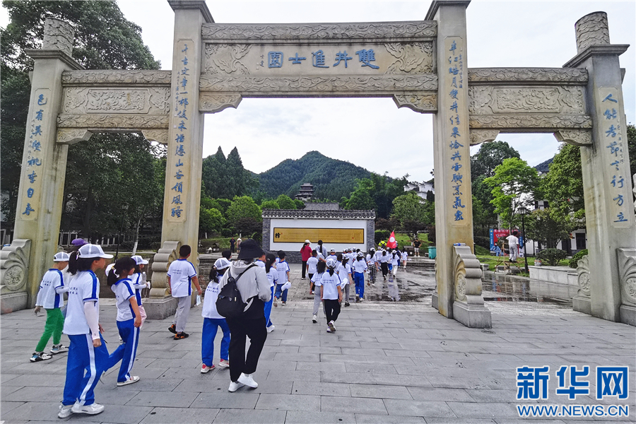 在江西省修水县双井黄庭坚故里景区,周边地区学生团队到此参观游学。新华网 王晓震 摄
