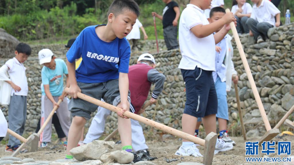 在江西省修水县陈门五杰故里景区,学生正在体验农耕劳作。新华网 王晓震 摄