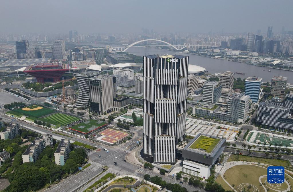 位于上海浦东新区世博园区的金砖国家新开发银行总部大楼(6月17日摄,无人机照片)。新华社记者 方喆 摄