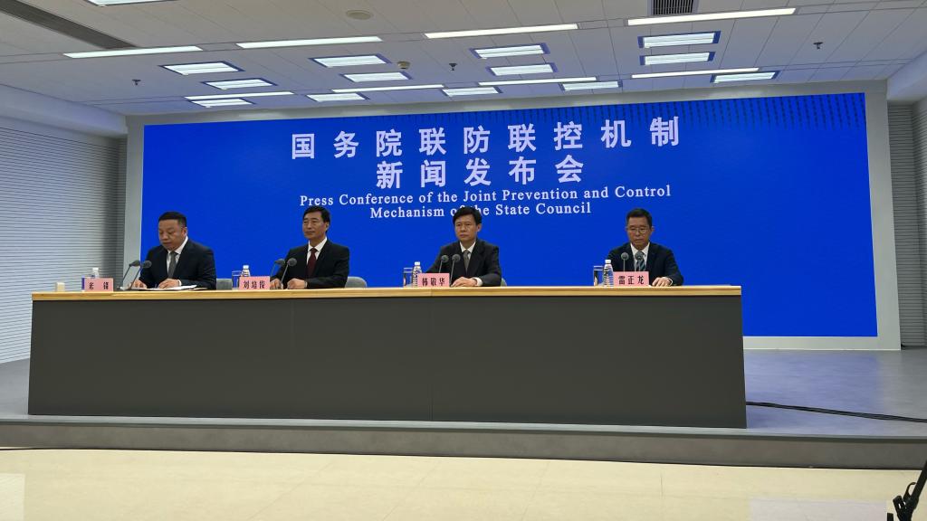 国务院联防联控机制新闻发布会现场。新华社记者 顾天成 摄