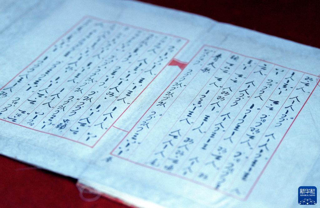 西安东仓鼓乐社沿用至今的唐宋时期俗字谱记写的乐谱(6月23日摄)。新华社记者 刘潇 摄