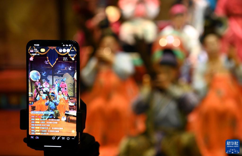 6月23日,西安东仓鼓乐社的乐手在进行线上直播演出。新华社记者 刘潇 摄