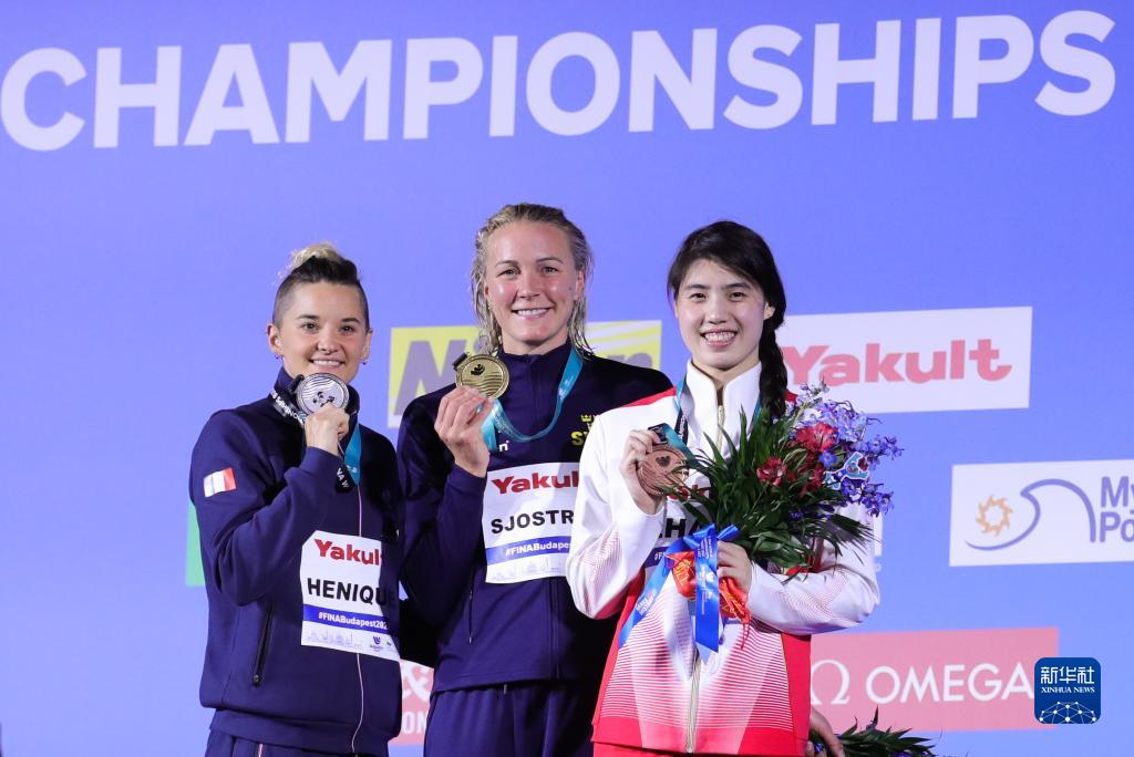女子50米蝶泳决赛中,该项目世界纪录保持者、瑞典名将舍斯特伦以24秒95夺冠,法国选手埃尼克25秒31摘银;张雨霏以0.01秒之差位居第三,继100米蝶泳和200米蝶泳后,摘得本届世锦赛个人第三枚铜牌。