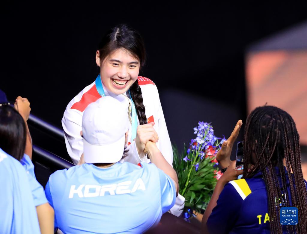6月24日,李冰洁在比赛现场。新华社记者郑焕松、李颖摄