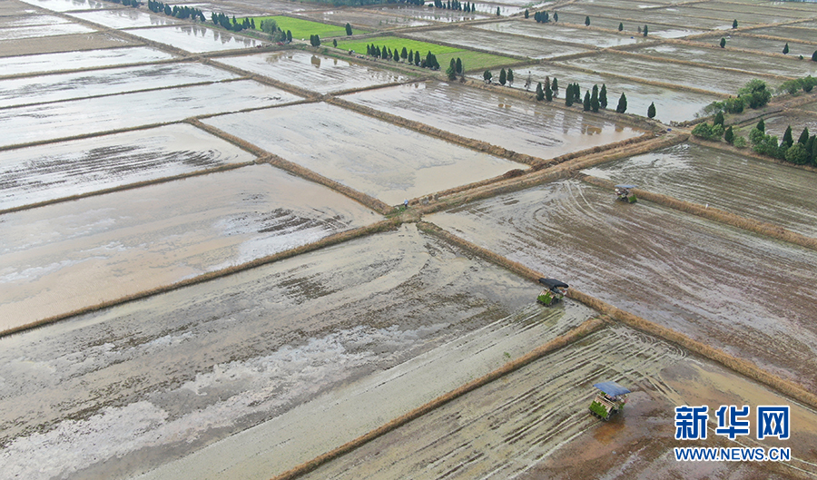 6月22日,在安徽省合肥市肥西县上派镇金岗村,水稻插秧机正在插秧。