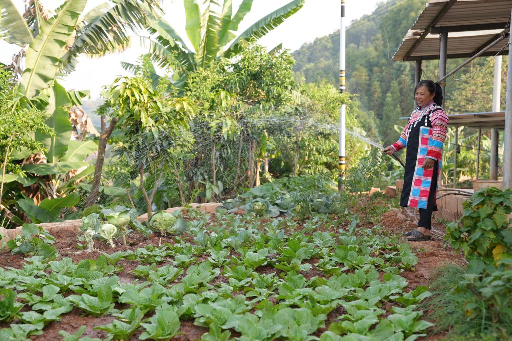 云南西盟县勐梭镇班母村群众正在浇灌“微菜园”。(受访对象供图)