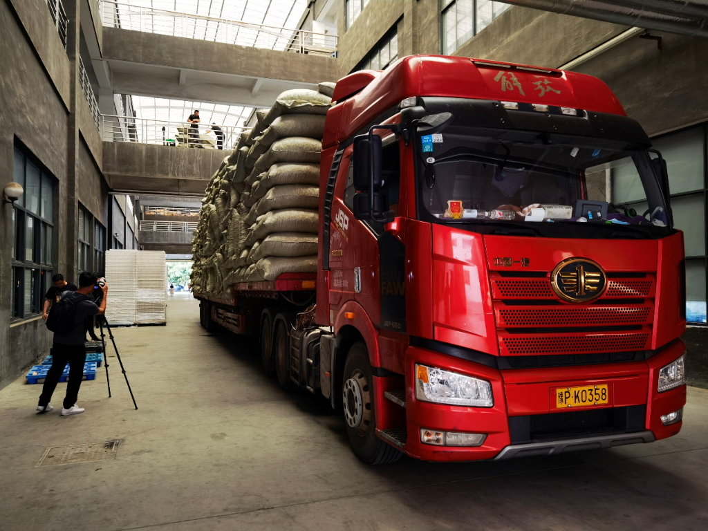 巴贝集团内,客户来收购蚕茧的卡车正在装货。新华社记者 殷晓圣 摄