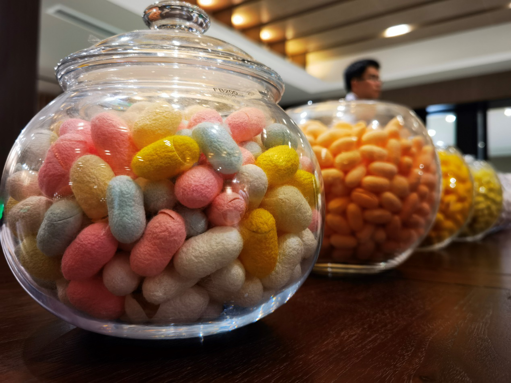 巴贝集团展厅内的彩色蚕茧。新华社记者 殷晓圣 摄