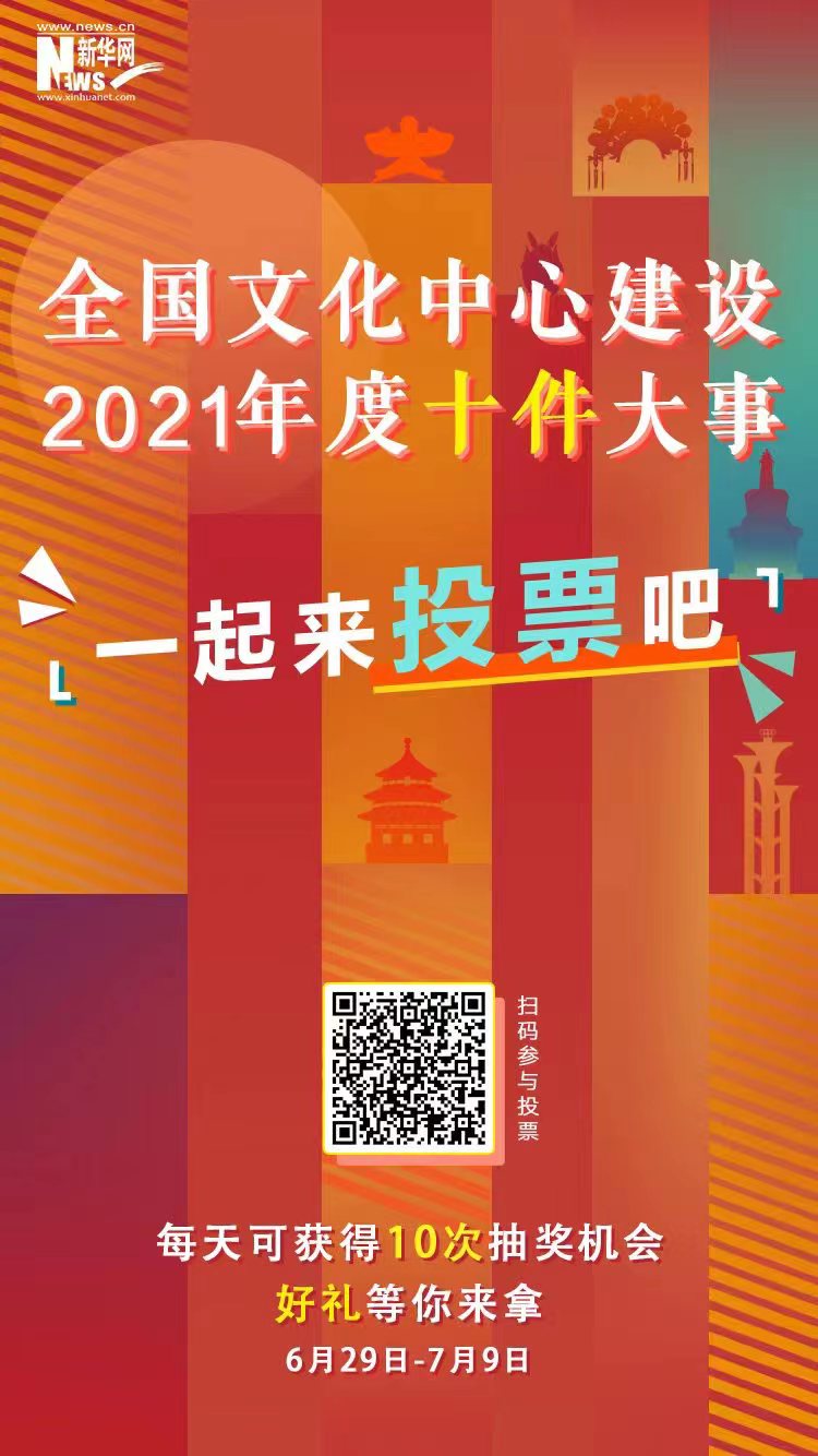 投票活动从2022年6月29日持续至2022年7月9日,网民可登陆“全国文化中心建设2021年度十件大事”页面进行投票。https://my-h5news.app.xinhuanet.com/h5activity/qgwh/index.html