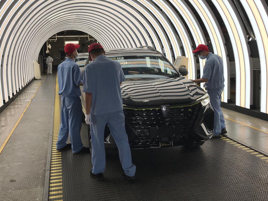 6月18日,上汽集团临港乘用车工厂里,一辆新车刚刚下线。新华社记者周蕊 摄