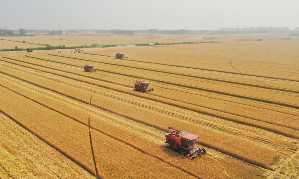 麦田里,收割机马达轰鸣……今年夏粮小麦增产丰收已成定局、质量好于常年。