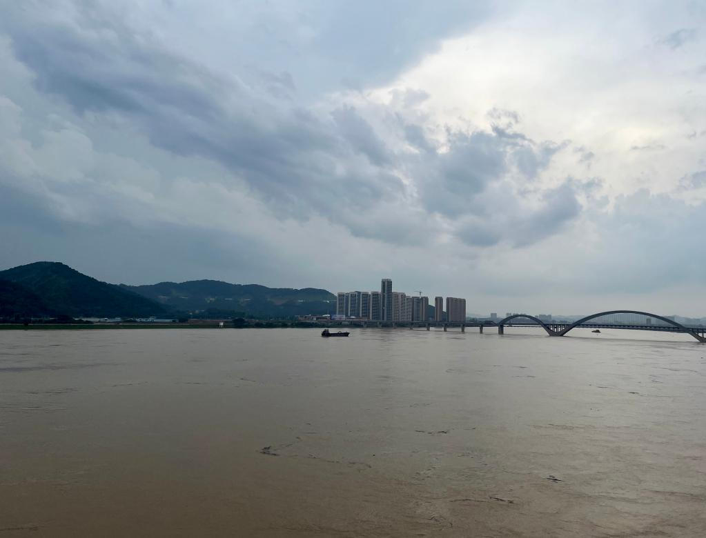 6月21日,在梧州市城区河段,河水水位上涨明显。新华社记者 徐海涛 摄
