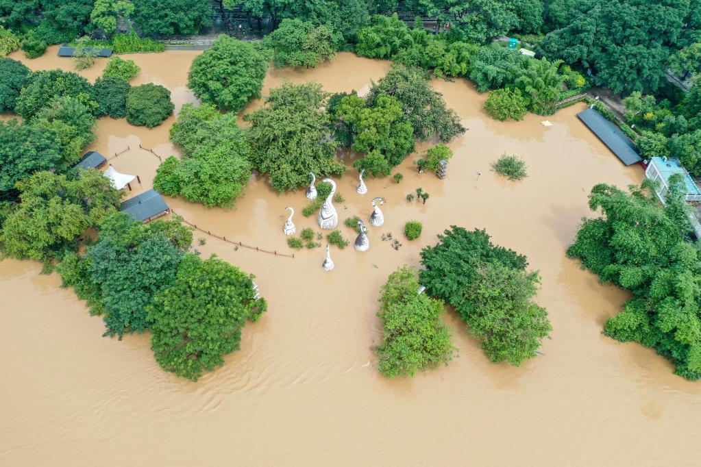 图为6月22日拍摄的桂林市区一处被洪水淹没的公园(无人机照片)。新华社记者 曹祎铭 摄