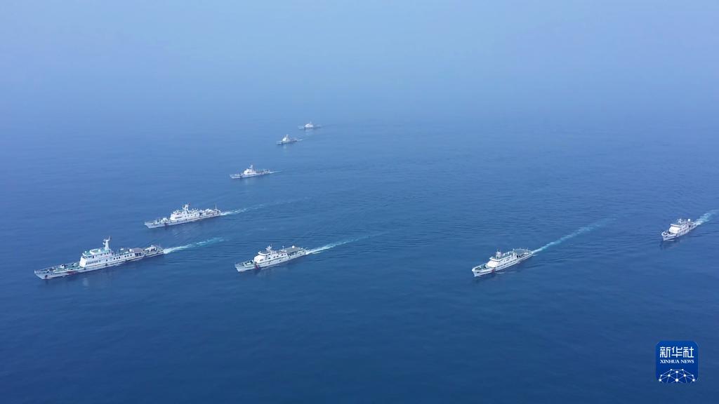 海警舰艇编队在我管辖海域巡航(2021年3月30日摄,无人机照片)。新华社发