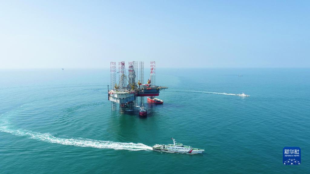 海警舰艇绕航石油平台(2022年3月31日摄,无人机照片)。新华社发