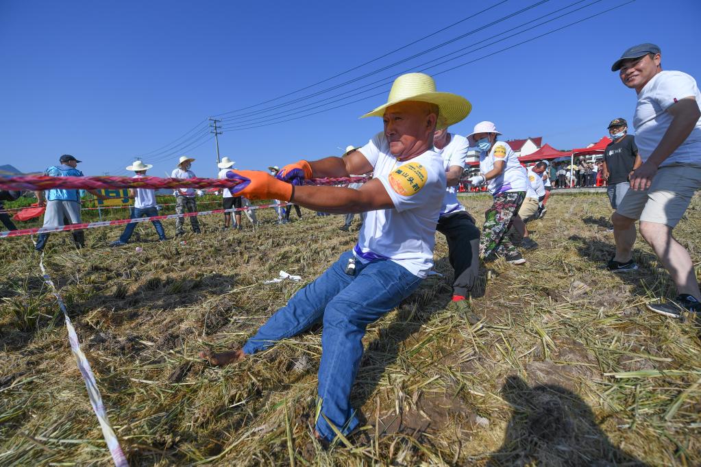 浙江建德农民参加“田间拔河”趣味比赛。新华社记者 徐昱 摄