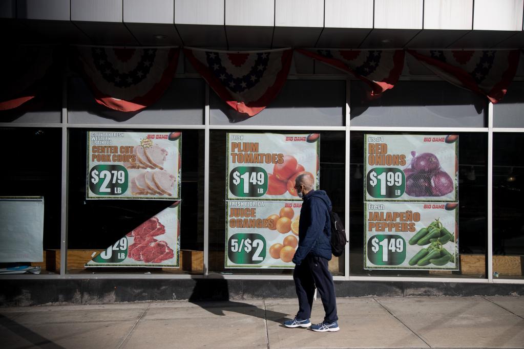 2月10日,一名男子从美国纽约一家超市的促销广告旁走过。(新华社发,郭克摄)