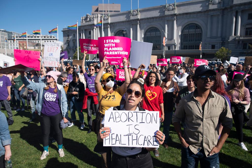 6月24日,堕胎权支持者在美国加利福尼亚州旧金山市政厅前参加抗议活动。(新华社发,李建国摄)