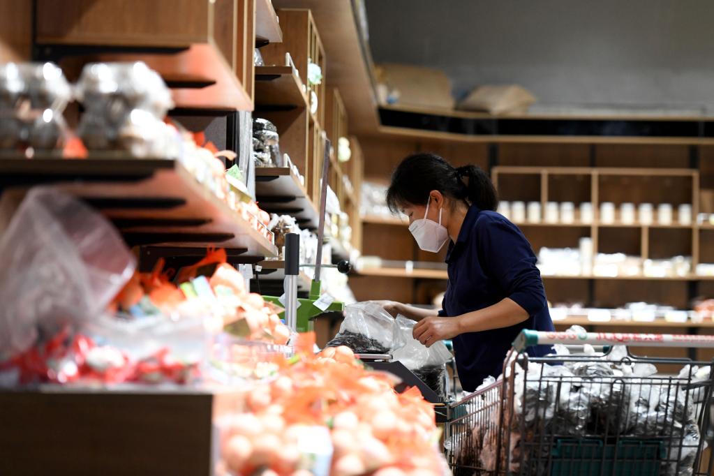 7月4日,在安徽泗县佳美超市,工作人员在分装商品。新华社记者 黄博涵 摄