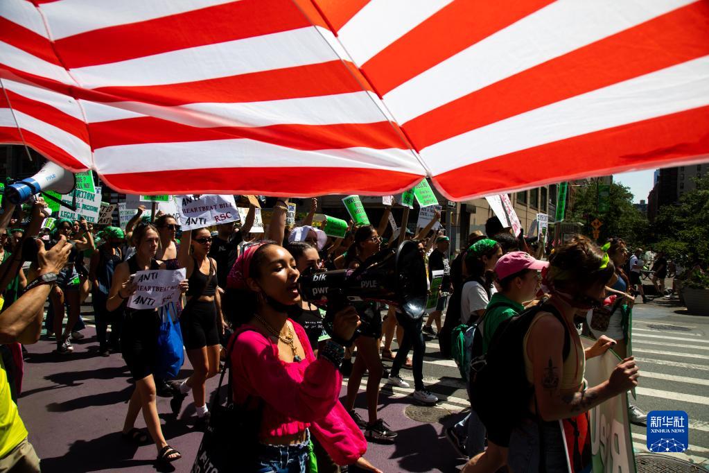 7月4日,堕胎权支持者在美国纽约举行示威游行。新华社发(郭克摄)