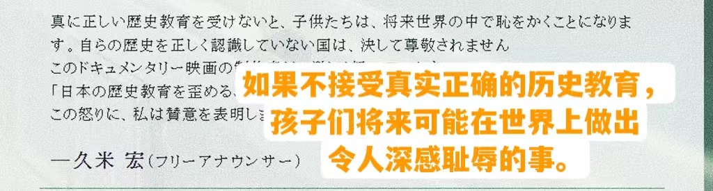 这部纪录片由跟踪报道日本教育多年的资深记者齐加尚代执导,聚焦日本政界如何通过篡改教科书歪曲历史,又如何施压学校和教师。片中多个真实事例令人深感震惊和愤怒。