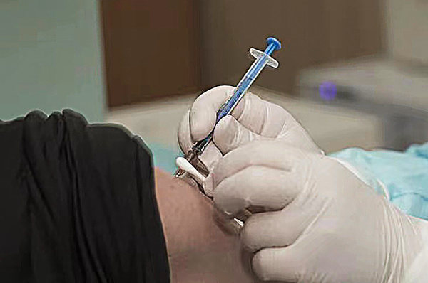 5月1日,一名临床试验志愿者在杭州注射奥密克戎变异株新冠病毒灭活疫苗。新华社发