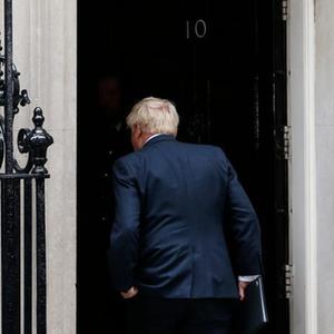 7月7日,英国首相鲍里斯·约翰逊在伦敦唐宁街10号门前发表讲话后返回室内。新华社记者 韩岩 摄
