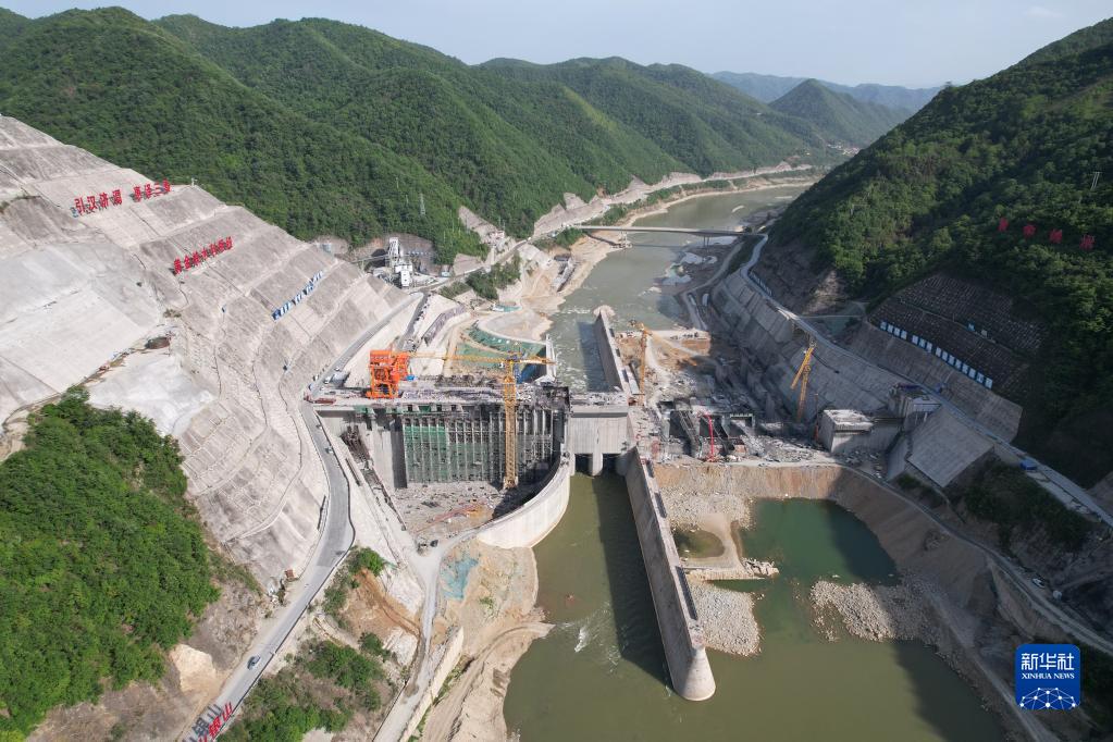 建设中的引汉济渭工程黄金峡水利枢纽(2022年4月19日摄,无人机照片)。新华社记者 邵瑞 摄