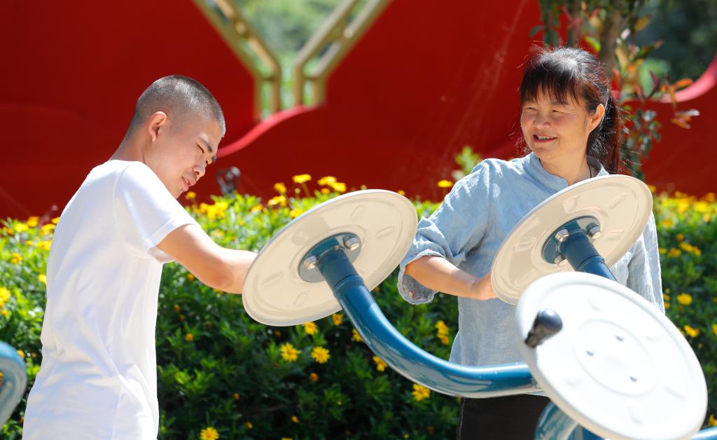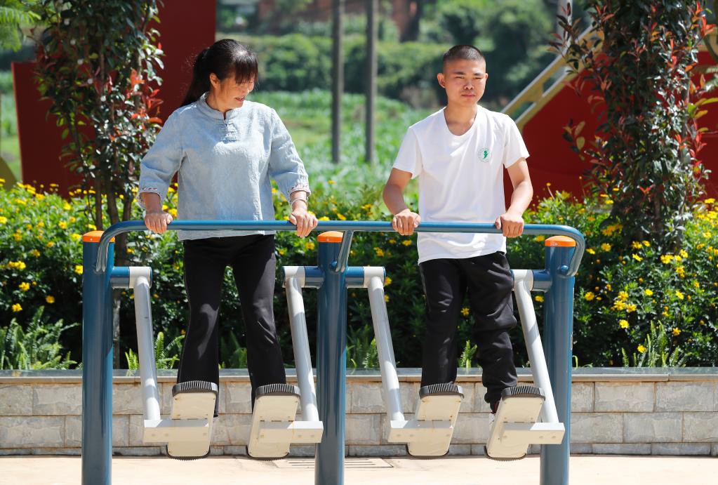 阿彬和妈妈在村里的小广场锻炼。