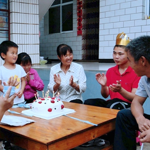 傍晚时分,生日蜡烛点亮,这个特殊的家庭全家人围成一圈,为阿彬唱起生日快乐歌。唱完后,曹丽琼让阿彬许愿,阿彬虽然不懂愿望是什么意思,却笑得合不拢嘴,一口气吹灭蜡烛。