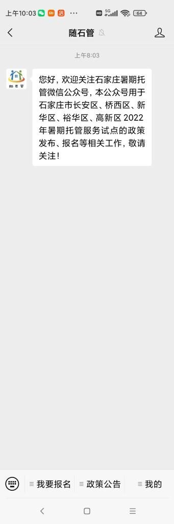 家长可通过微信搜索“随石管”公众号进行报名(受访单位供图)