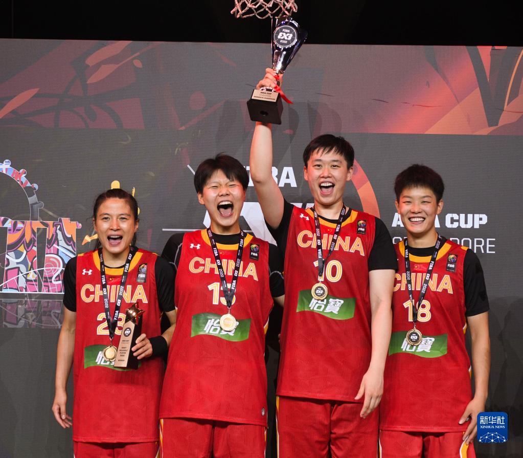 当日,在新加坡举行的2022国际篮联三人篮球亚洲杯女子决赛中,中国队以14比10战胜澳大利亚队,夺得冠军。新华社发(邓智炜摄)