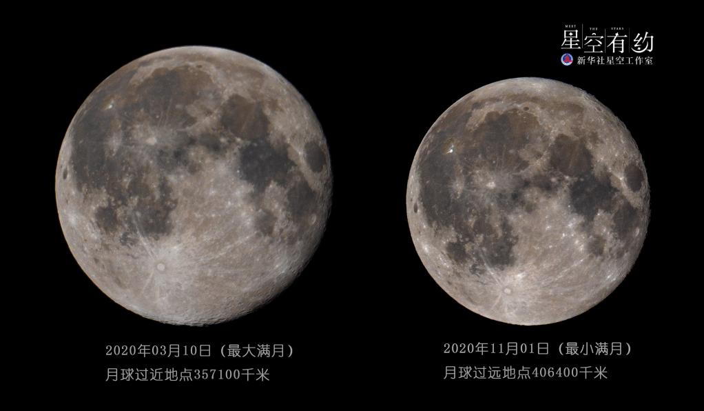 这是杨婧2020年拍摄的该年度“最大满月”和“最小满月”(拼版)。(本人供图)