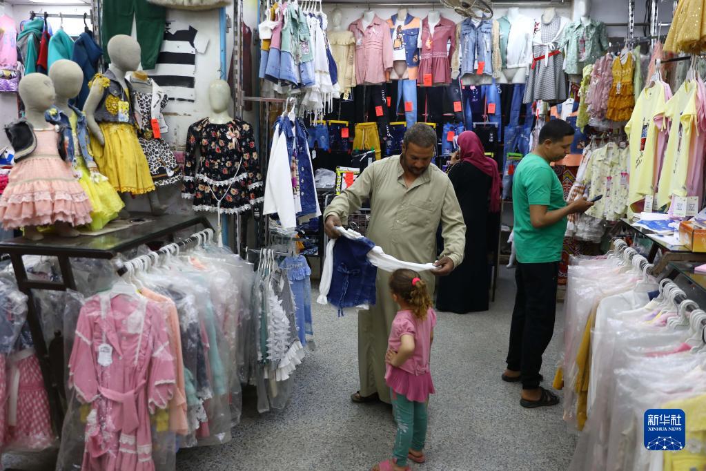 7月6日,人们在埃及开罗一家服装店购置衣物。西亚北非多国从7月9日开始宰牲节假期,然而持续的通货膨胀冲淡了节日氛围。人们无力举办传统庆祝仪式,商家销售惨淡,不少人直言这个宰牲节“不幸福”。新华社发(艾哈迈德·戈马摄)