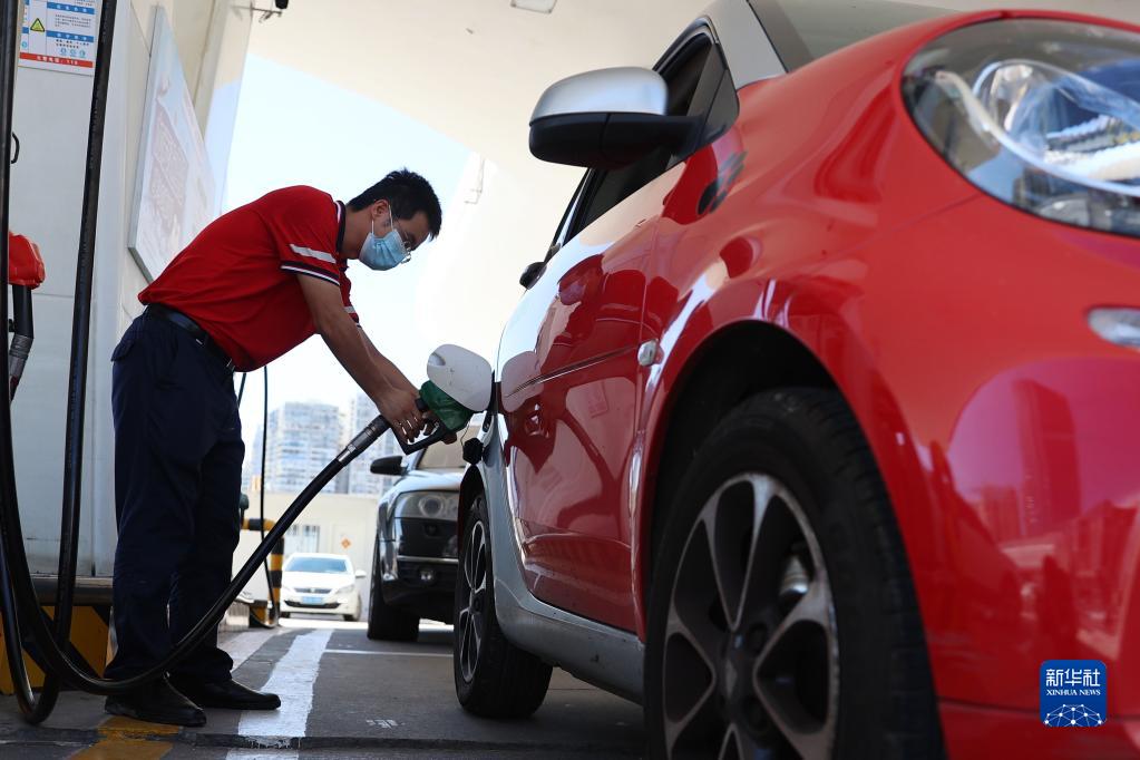 7月12日,福建省厦门市思明区一加油站的工作人员在给汽车加油。 新华社发(曾德猛 摄)