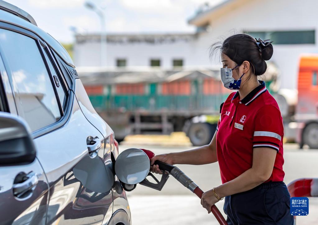 7月12日,贵州省毕节市一加油站的工作人员在为汽车加油。 新华社发(范晖 摄)