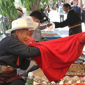 “我还是以第一次见到这样的交易方式,开了眼界!”在摊位上,游客们好奇地看着买卖双方在宽大的藏袍衣袖中用手指传递价格信息。过去,这种传统交易方式在牧区比较受认可,如今已逐步被“扫码付款”取代,不过也会在如马匹、玛瑙、首饰等贵重物品的交易中偶尔出现,成为独特一景。