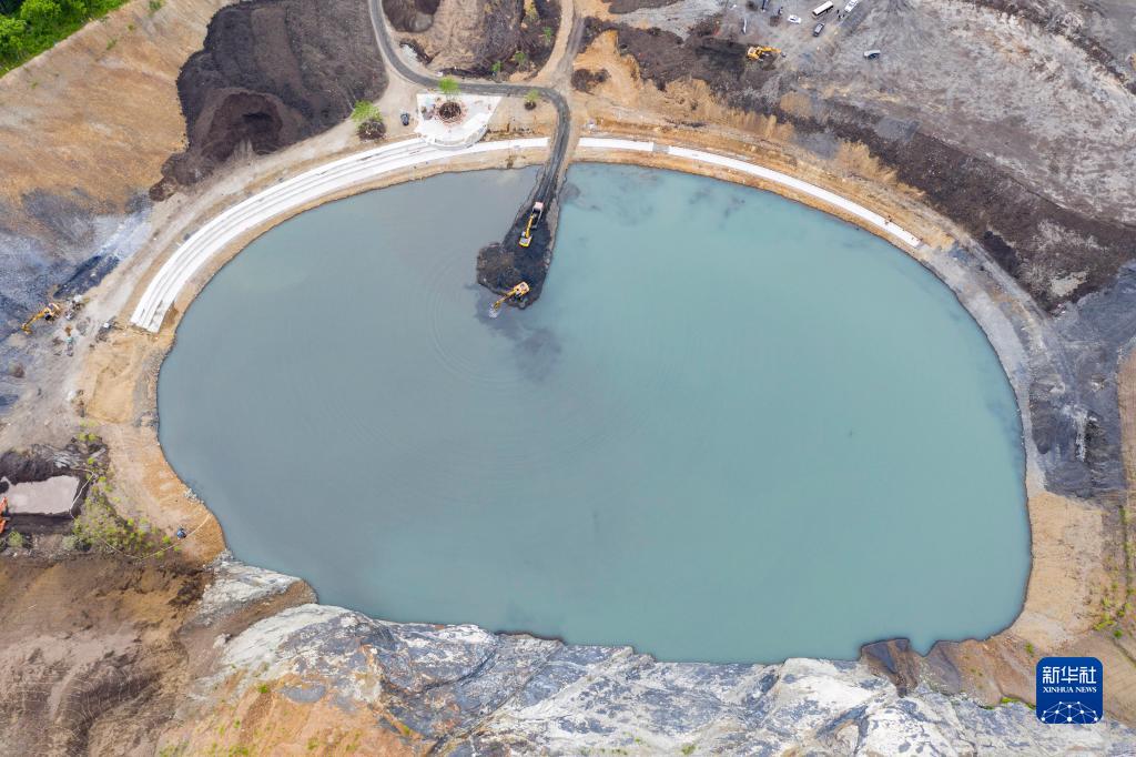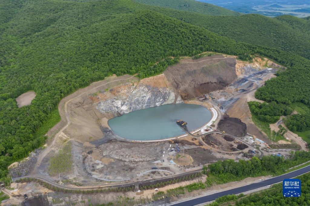 位于黑龙江省双鸭山市宝清县的翡翠湖矿坑森林公园项目工地(6月17日摄,无人机照片)。 新华社记者 谢剑飞 摄