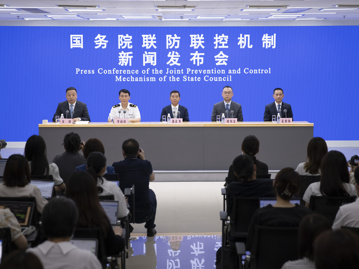 7月8日,国务院联防联控机制就科学精准做好疫情防控工作有关情况举行发布会。新华社发(杨佳 摄)