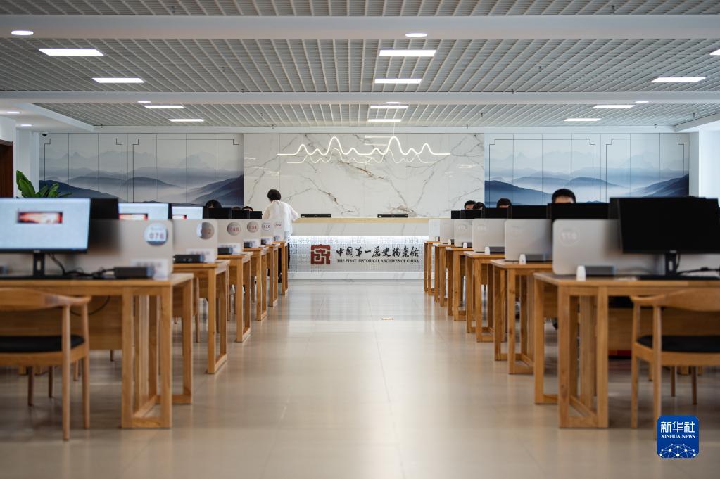 这是7月13日拍摄的中国第一历史档案馆新馆电子档案阅览室。