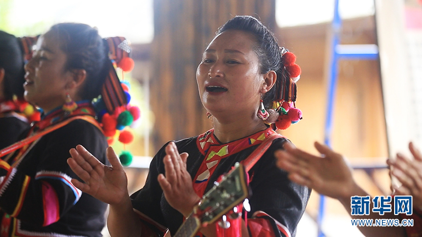 老达保村民在表演无伴奏合唱(6月9日摄)。新华网 李浩 摄