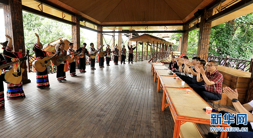 老达保村民在为游客表演歌舞(6月9日摄)。新华网 李浩 摄