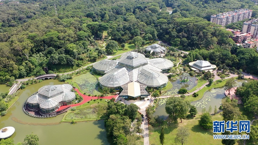 航拍镜头下的华南国家植物园温室群展区。新华网发(吴昊天 摄)