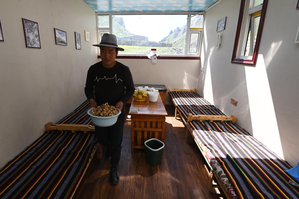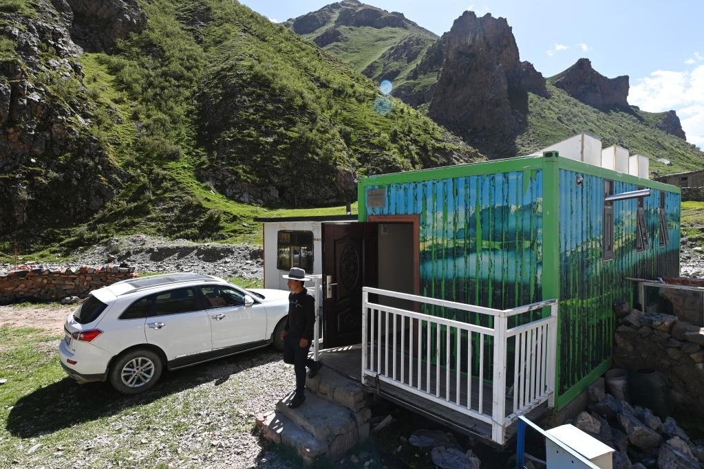 盛夏,昂赛大峡谷流水潺潺、绿草如茵;四周山势奇绝,常有雪豹、白唇鹿、岩羊等野生动物出没。在特许经营接待集装箱内,桑周忙着打扫卫生,清洗床铺,准备迎接从各地到来的自然体验者。