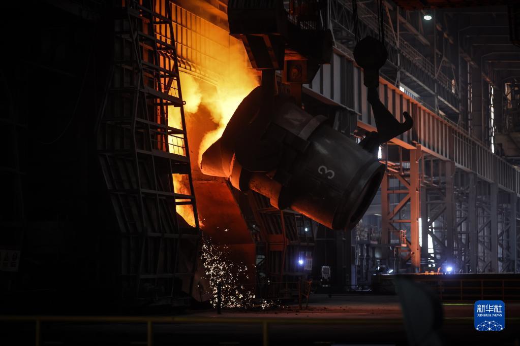 辽宁省鞍山市鞍钢集团鞍钢股份炼钢总厂三分厂生产车间(2021年4月20日摄)。新华社记者 潘昱龙 摄