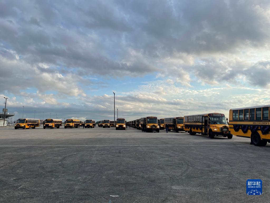 新华社休斯敦7月14日电 特写:美国休斯敦大街上的52辆黄色空巴士