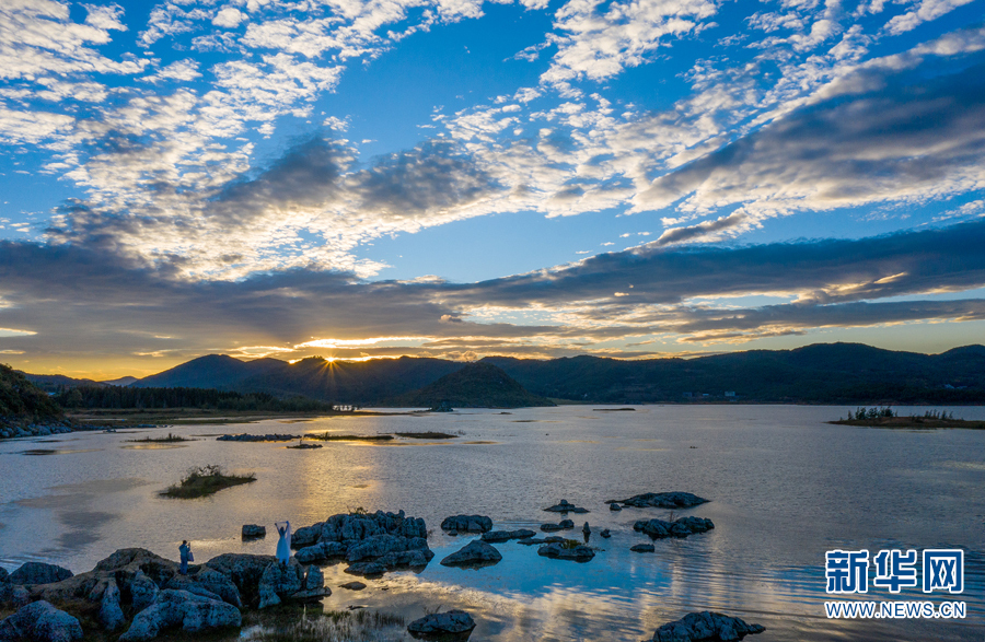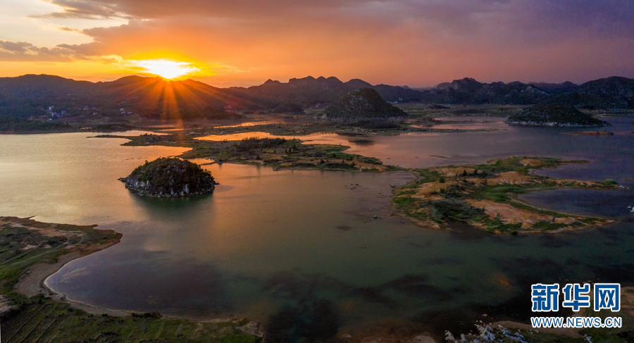 海峰湿地的夕阳唱晚(2021年5月21日摄)。新华网发(孙文来 摄)
