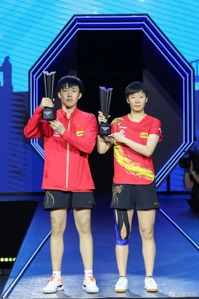 在混双决赛中,王楚钦/王曼昱对阵日本组合张本智和/早田希娜,他们在先失两局的情况下连扳三局,惊险取胜。王曼昱在赛后说,这场球打得很困难,对手打得也非常好,由于自己膝盖有伤,刚开始压力比较大。王楚钦说,第三局王曼昱给了他很大的信心和鼓励,她的比赛发挥和对胜利的渴望值得他学习。