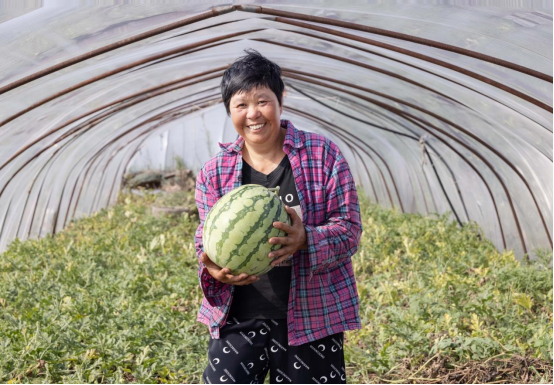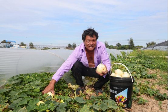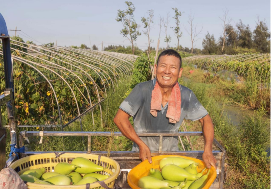菜农抱着硕大的冬瓜,感觉到的不是沉甸甸的重量,而是沉甸甸的满足。新华网发 温州市龙湾区农业农村局供图